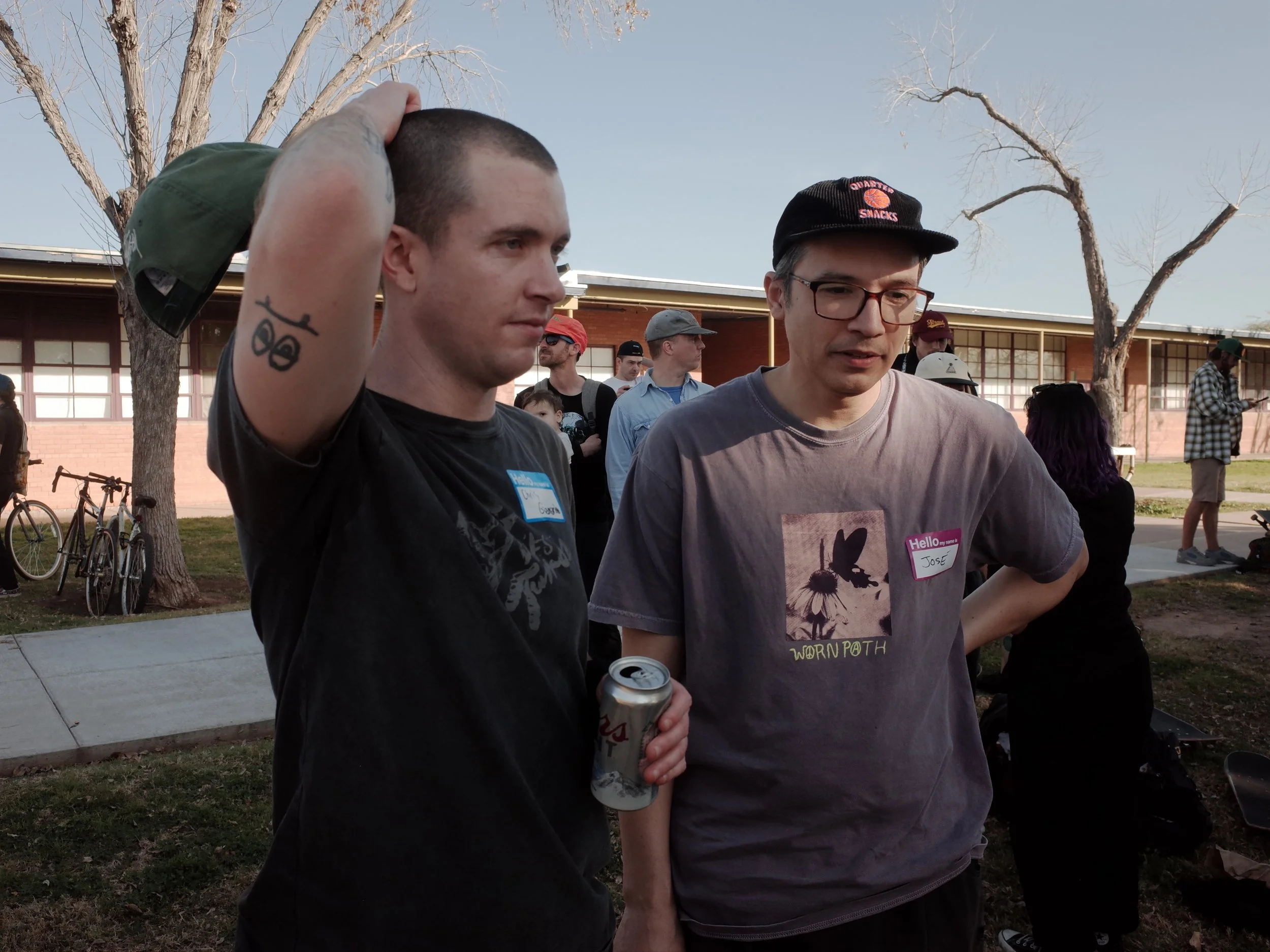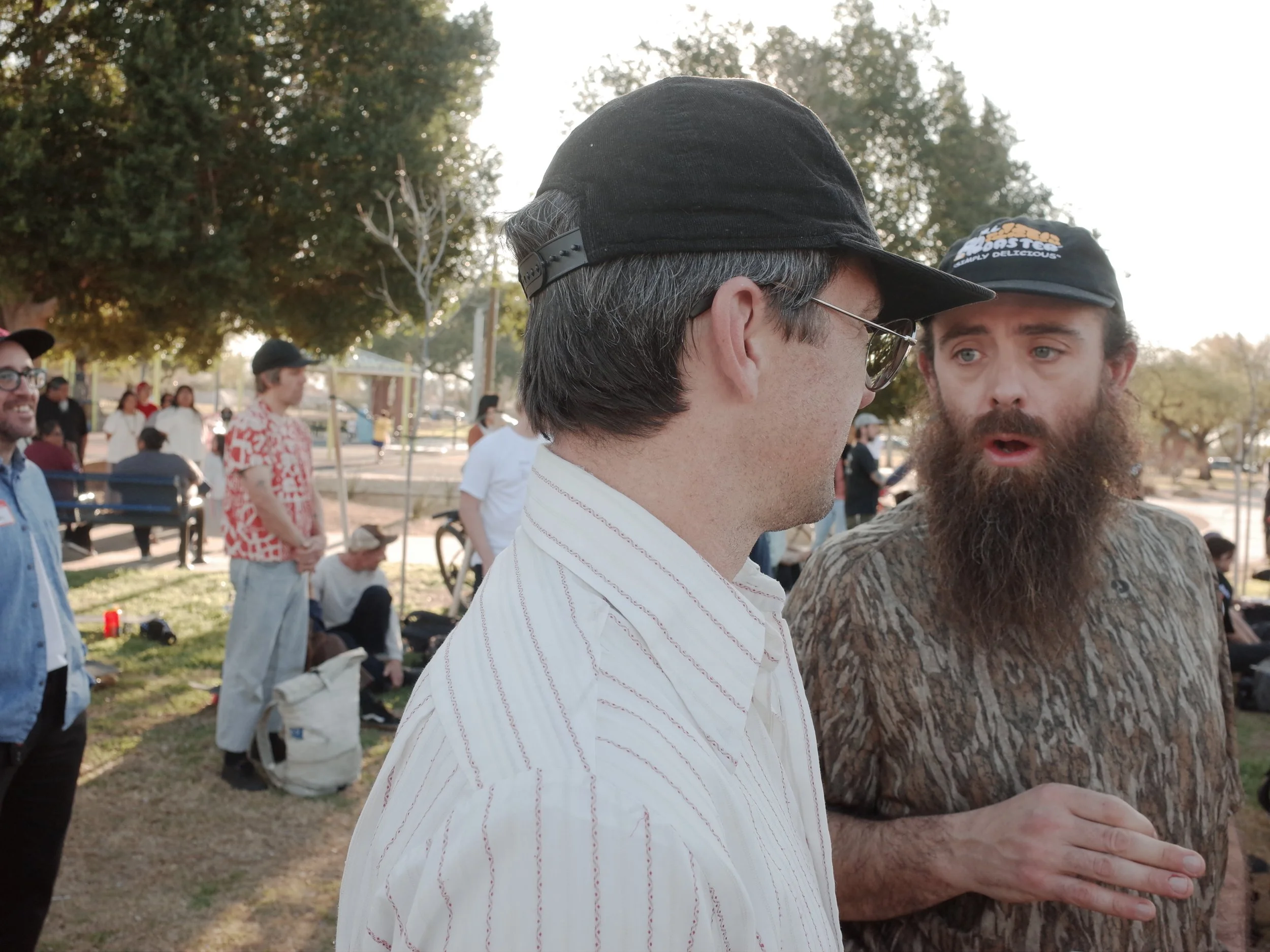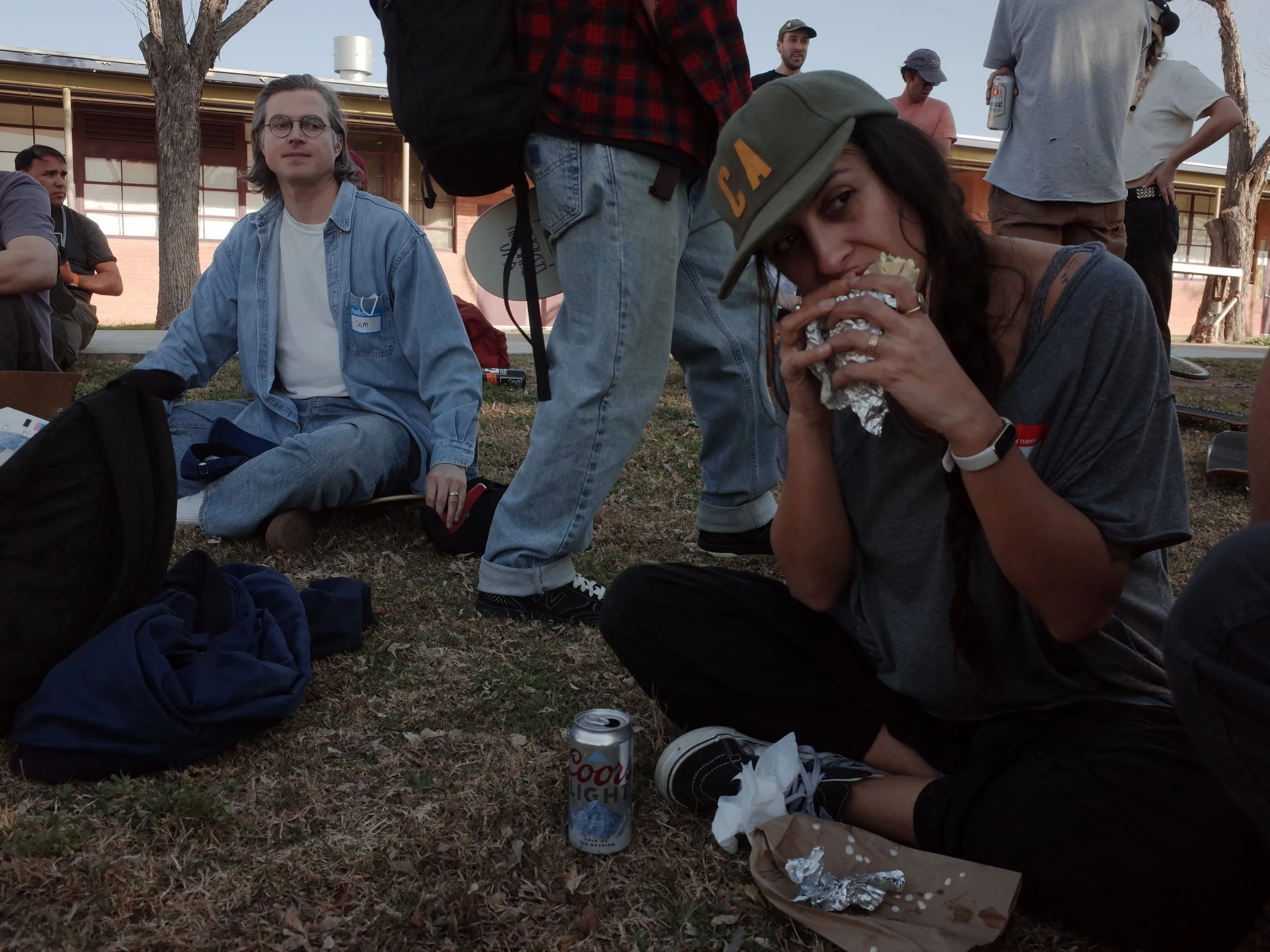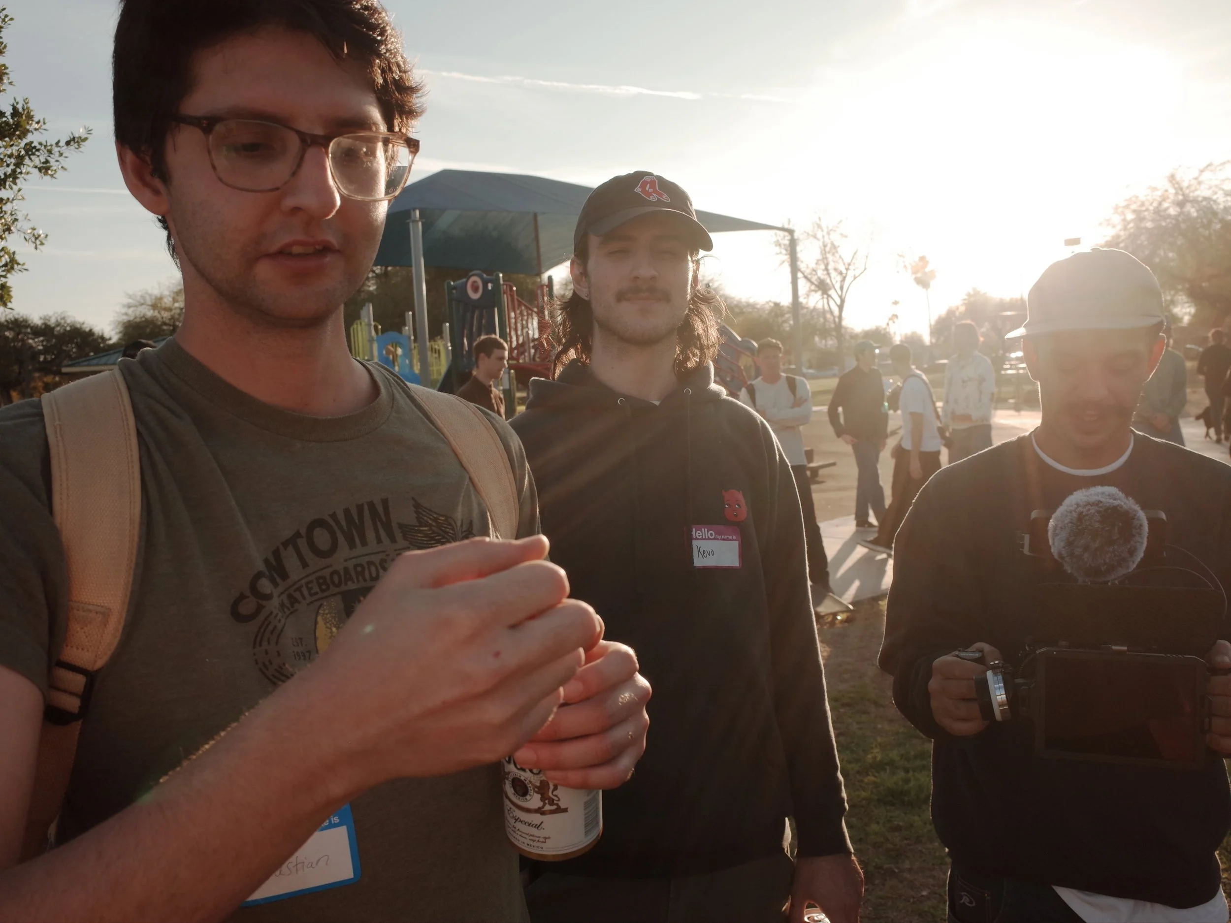 Chris and Tristan talking about how much we drank the night before. Too much.
