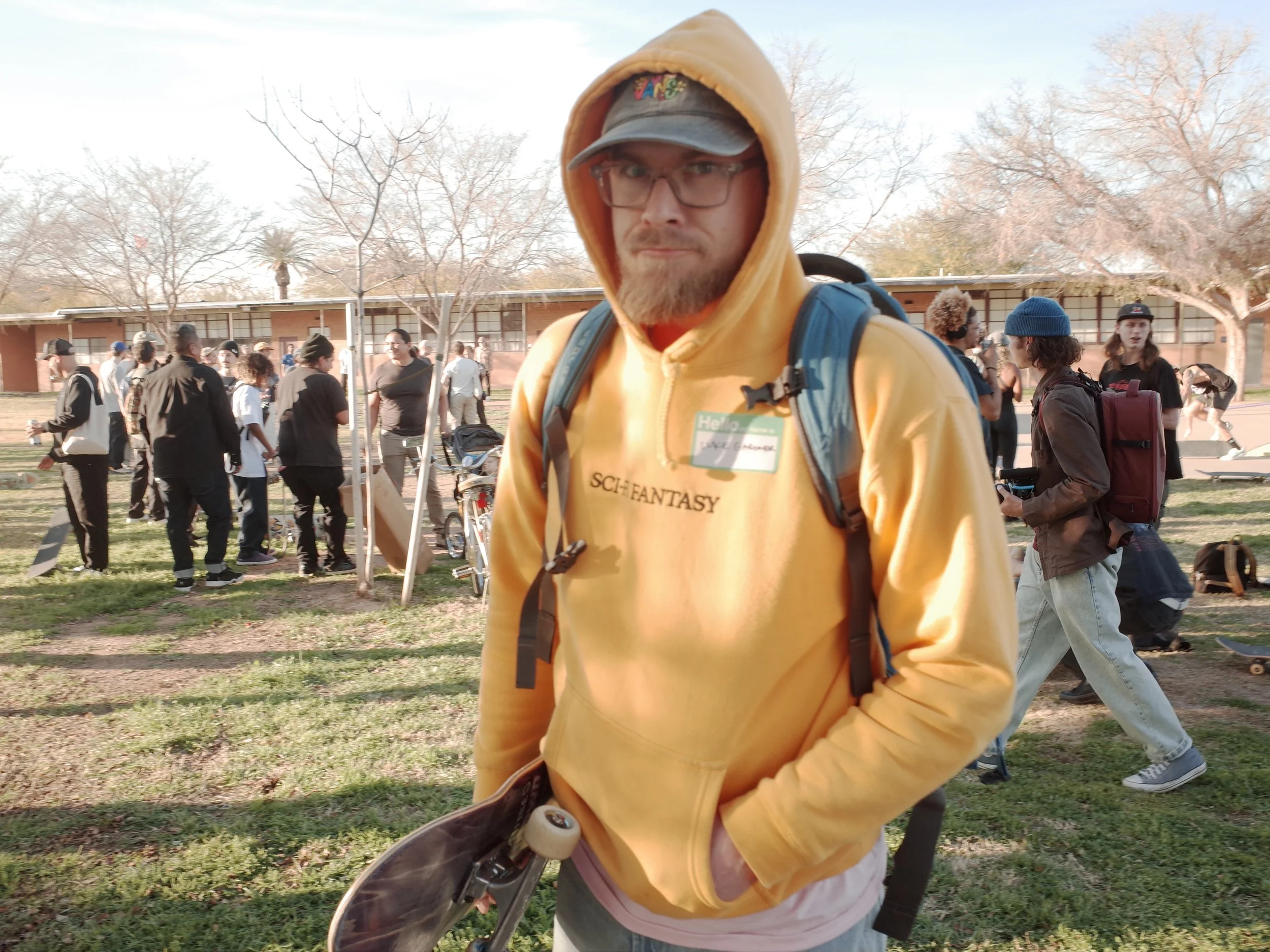 Keegan was bummed he couldn't skate so he rolled up w Bocce ball to every session. Support CSEF!